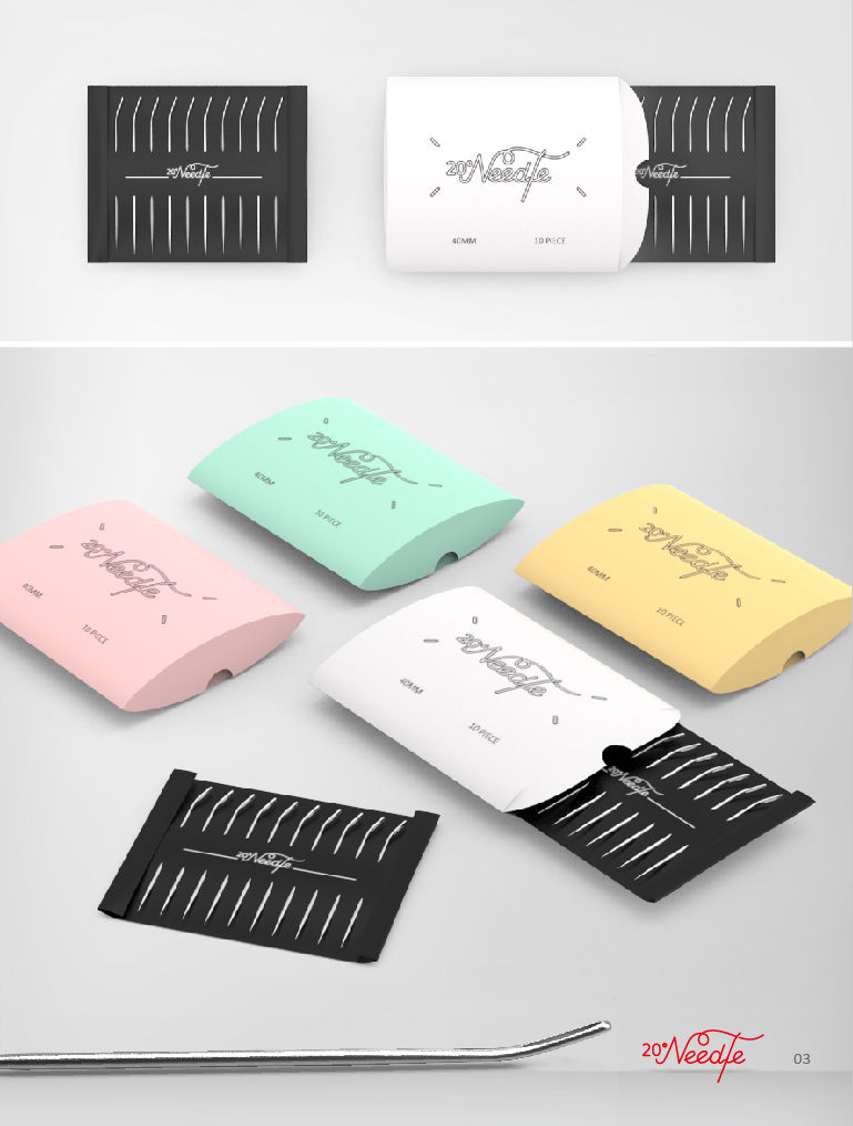 緣起於縫衣針掉落後難以檢取,在不影響現有使用習慣下,透過外型的重新設計。 將縫衣針尾端做彎折,掉落後的針以指腹旋轉後壓起,便可輕鬆撿拾。